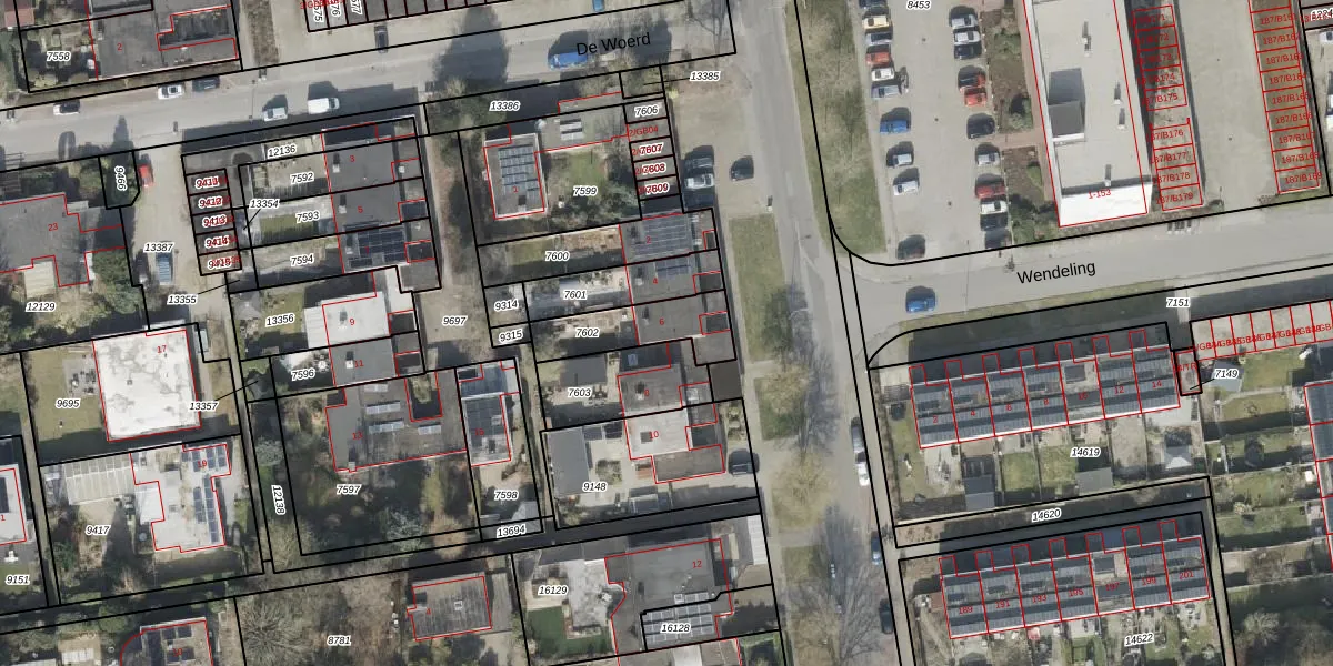 Gebruik de zoekbalk of klik op een perceel voor informatie over de adressen binnen dit perceel.