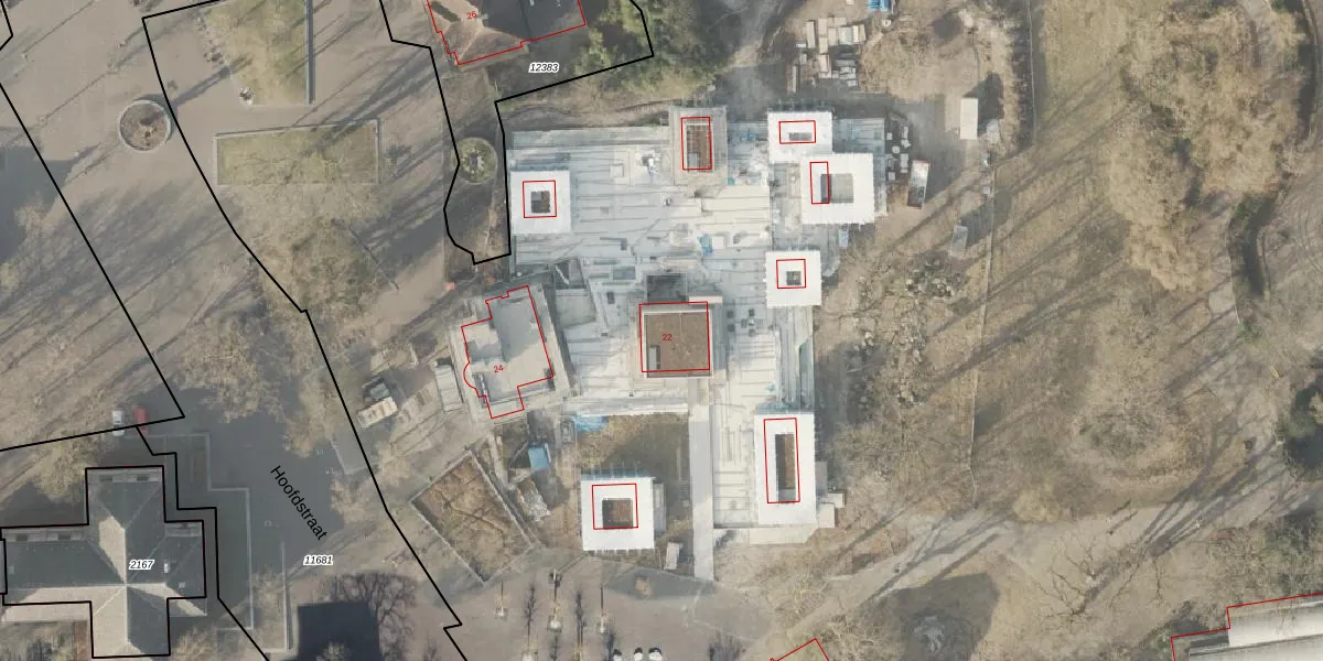 Het perceel waarop Hoofdstraat 22 staat heeft een oppervlakte van 11,1 ha. Dit is een zeer groot perceel. De perceeloppervlakte wordt geregistreerd door het Kadaster. Gedetailleerde informatie over de maten van dit perceel kunt u vinden in het rapport Kadastrale kaart met maatvoering van Hoofdstraat 22.