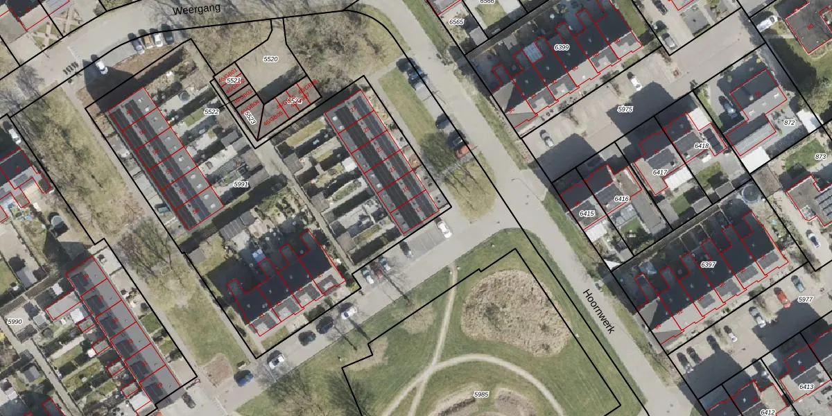 Het perceel waarop Hoornwerk 17 staat heeft een oppervlakte van 3285 m². Dit is een zeer groot perceel. De perceeloppervlakte wordt geregistreerd door het Kadaster. Gedetailleerde informatie over de maten van dit perceel kunt u vinden in het rapport Kadastrale kaart met maatvoering van Hoornwerk 17.