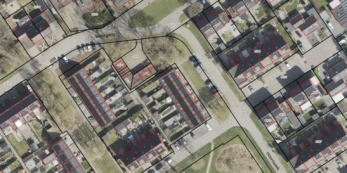 Het perceel waarop Hoornwerk 25 staat heeft een oppervlakte van 3285 m². Dit is een zeer groot perceel. De perceeloppervlakte wordt geregistreerd door het Kadaster. Gedetailleerde informatie over de maten van dit perceel kunt u vinden in het rapport Kadastrale kaart met maatvoering van Hoornwerk 25.