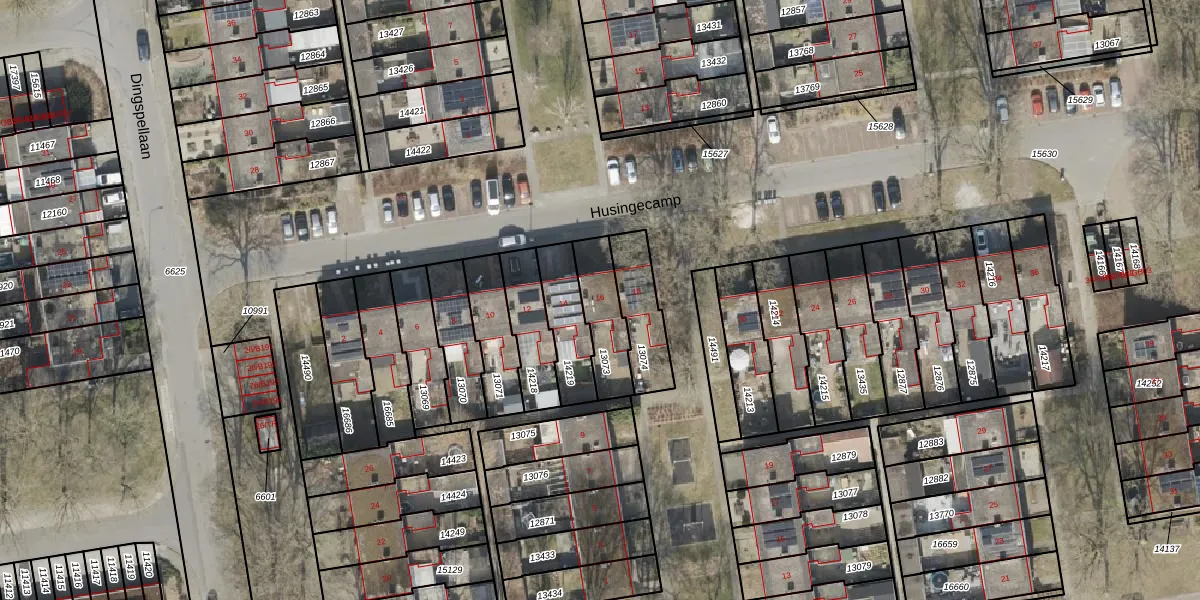 Het perceel waarop Husingecamp 16 staat heeft een oppervlakte van 166 m². Dit is een middelgroot perceel. De perceeloppervlakte wordt geregistreerd door het Kadaster. Gedetailleerde informatie over de maten van dit perceel kunt u vinden in het rapport Kadastrale kaart met maatvoering van Husingecamp 16.