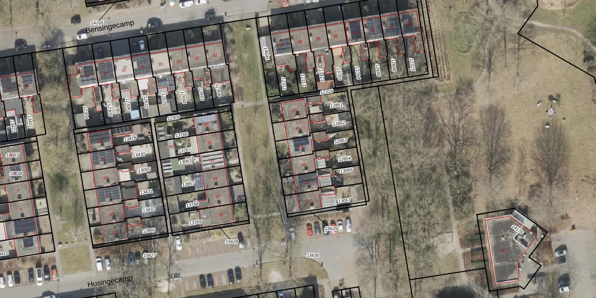 Het perceel waarop Husingecamp 43 staat heeft een oppervlakte van 165 m². Dit is een middelgroot perceel. De perceeloppervlakte wordt geregistreerd door het Kadaster. Gedetailleerde informatie over de maten van dit perceel kunt u vinden in het rapport Kadastrale kaart met maatvoering van Husingecamp 43.