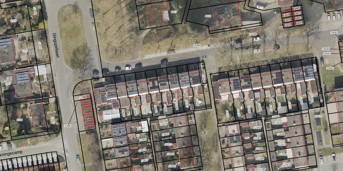 Gebruik de zoekbalk of klik op een perceel voor informatie over de adressen binnen dit perceel.