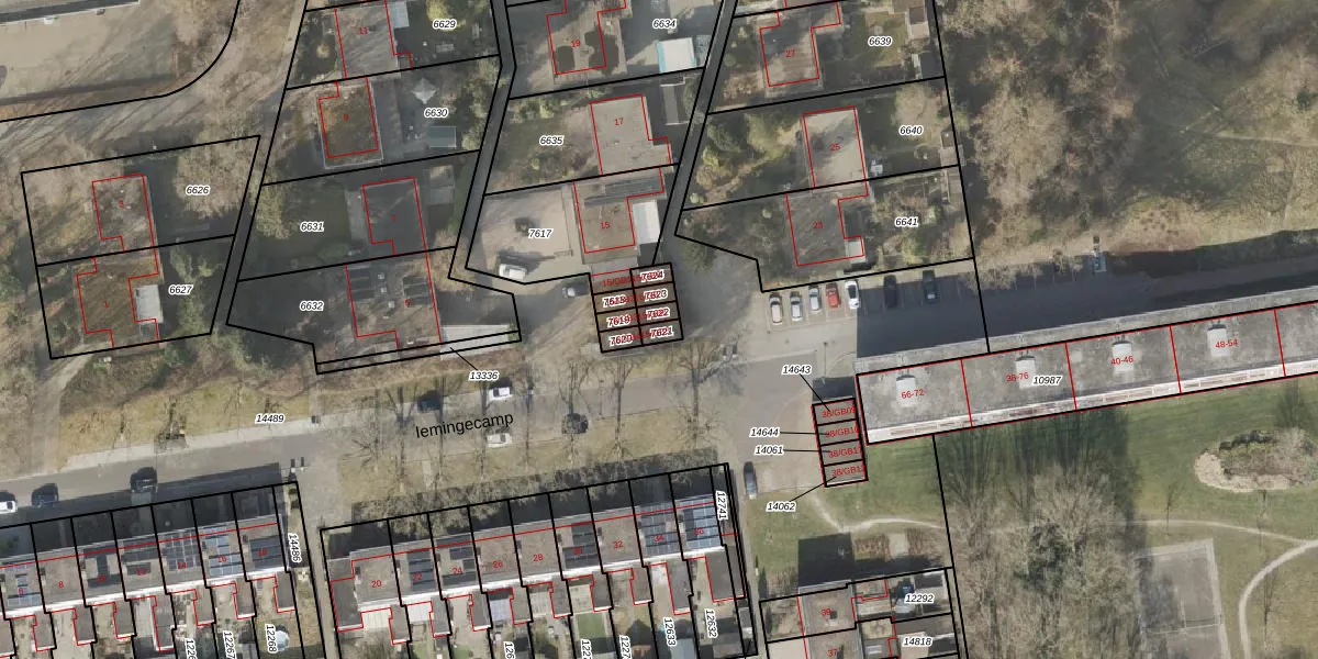Gebruik de zoekbalk of klik op een perceel voor informatie over de adressen binnen dit perceel.