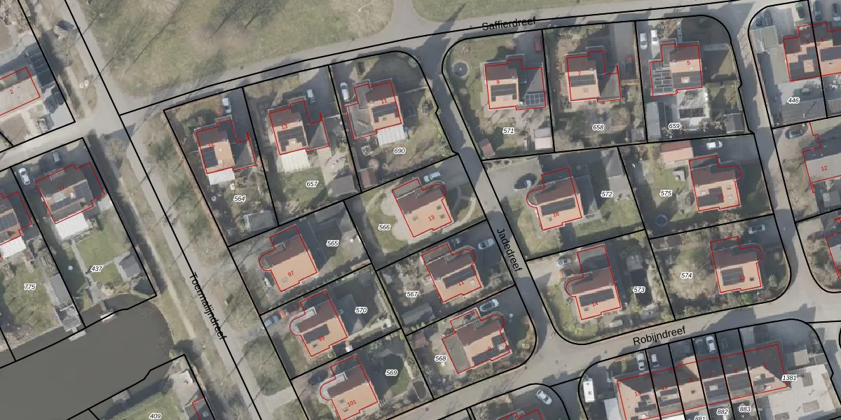 Het perceel waarop Jadedreef 13 staat heeft een oppervlakte van 523 m². Dit is een groot perceel. De perceeloppervlakte wordt geregistreerd door het Kadaster. Gedetailleerde informatie over de maten van dit perceel kunt u vinden in het rapport Kadastrale kaart met maatvoering van Jadedreef 13.