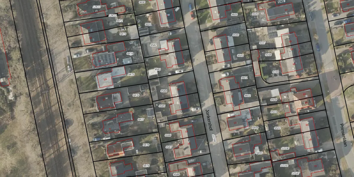 Het perceel waarop Jonkershof 14 staat heeft een oppervlakte van 326 m². Dit is een groot perceel. De perceeloppervlakte wordt geregistreerd door het Kadaster. Gedetailleerde informatie over de maten van dit perceel kunt u vinden in het rapport Kadastrale kaart met maatvoering van Jonkershof 14.