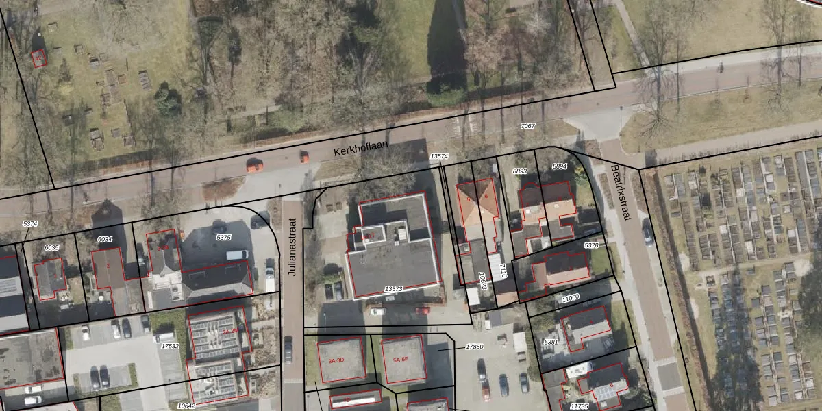 Het perceel waarop Julianastraat 1-C staat heeft een oppervlakte van 1295 m². Dit is een zeer groot perceel. De perceeloppervlakte wordt geregistreerd door het Kadaster. Gedetailleerde informatie over de maten van dit perceel kunt u vinden in het rapport Kadastrale kaart met maatvoering van Julianastraat 1-C.
