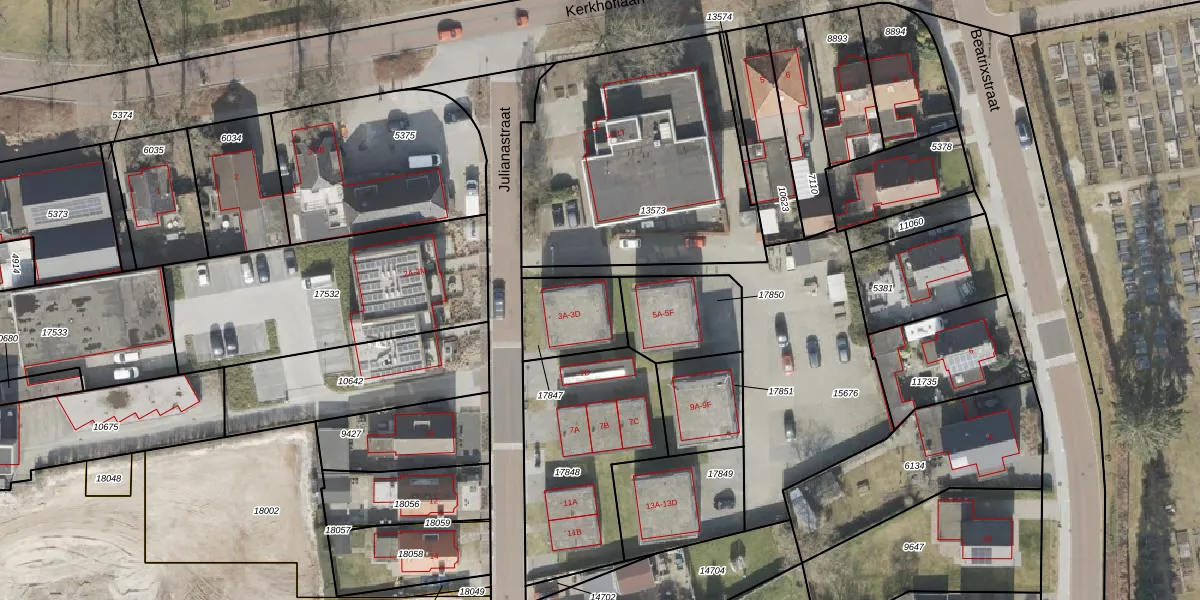 Julianastraat 3-A is gelegen op kadastraal perceel EMN00F17847. Deze kadastrale aanduiding is uniek en wordt gebruikt door het Kadaster om eigendomsrechten en andere zakelijke rechten vast te leggen. Het perceel maakt onderdeel uit van de kadastrale gemeente Emmen.
