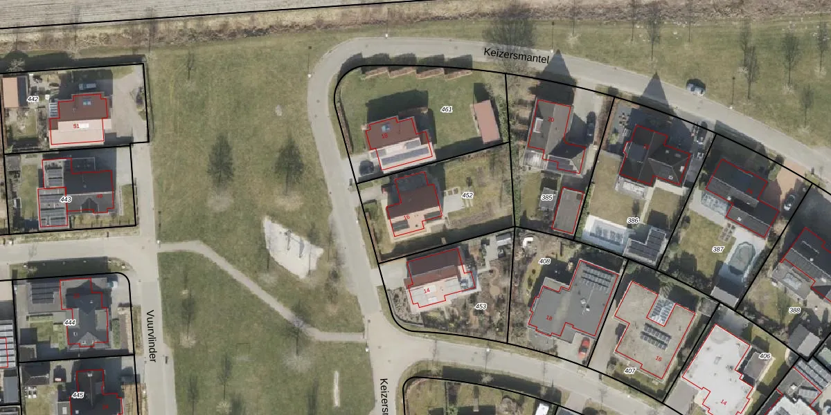 Keizersmantel 16 is gelegen op kadastraal perceel EMN00AE452. Deze kadastrale aanduiding is uniek en wordt gebruikt door het Kadaster om eigendomsrechten en andere zakelijke rechten vast te leggen. Het perceel maakt onderdeel uit van de kadastrale gemeente Emmen.