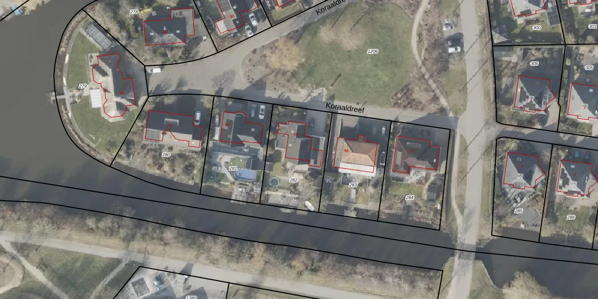 Koraaldreef 46 is gelegen op kadastraal perceel EMN00Y282. Deze kadastrale aanduiding is uniek en wordt gebruikt door het Kadaster om eigendomsrechten en andere zakelijke rechten vast te leggen. Het perceel maakt onderdeel uit van de kadastrale gemeente Emmen.