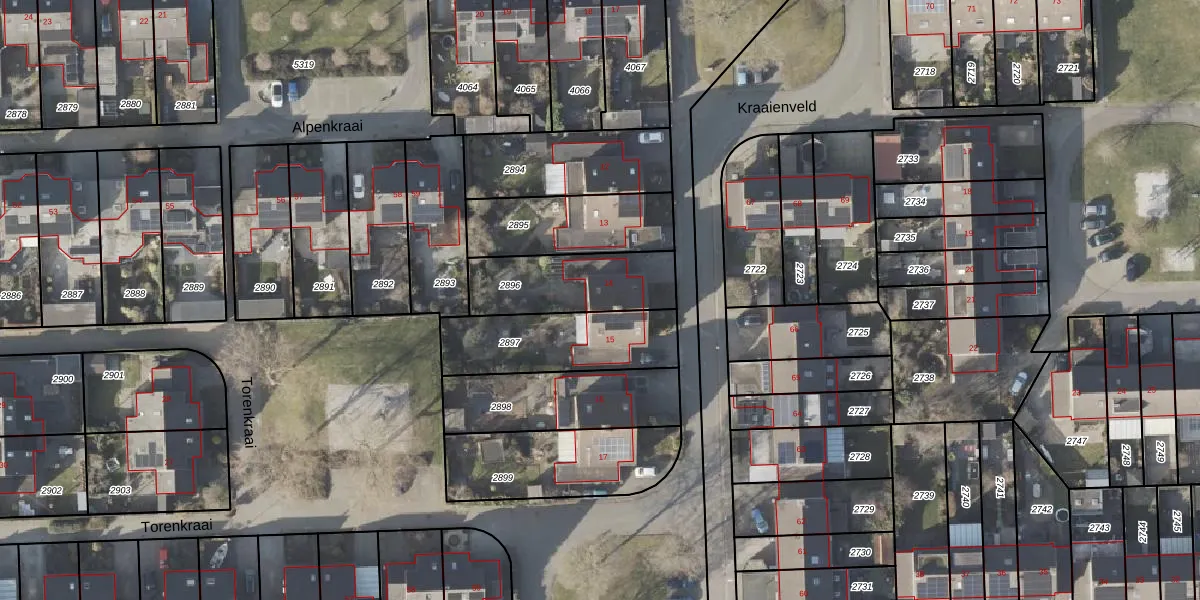 Het perceel waarop Kraaienveld 14 staat heeft een oppervlakte van 336 m². Dit is een groot perceel. De perceeloppervlakte wordt geregistreerd door het Kadaster. Gedetailleerde informatie over de maten van dit perceel kunt u vinden in het rapport Kadastrale kaart met maatvoering van Kraaienveld 14.