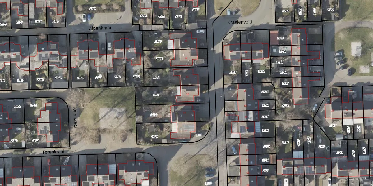 Kraaienveld 15 is gelegen op kadastraal perceel EMN00W2897. Deze kadastrale aanduiding is uniek en wordt gebruikt door het Kadaster om eigendomsrechten en andere zakelijke rechten vast te leggen. Het perceel maakt onderdeel uit van de kadastrale gemeente Emmen.