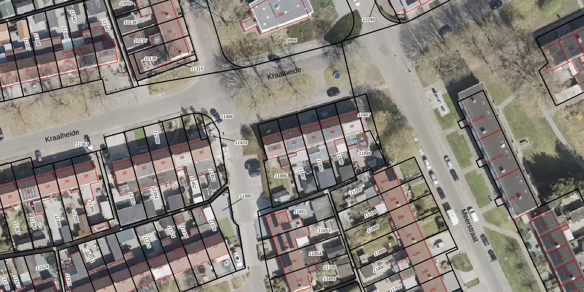 Het perceel waarop Kraaiheide 42 staat heeft een oppervlakte van 191 m². Dit is een middelgroot perceel. De perceeloppervlakte wordt geregistreerd door het Kadaster. Gedetailleerde informatie over de maten van dit perceel kunt u vinden in het rapport Kadastrale kaart met maatvoering van Kraaiheide 42.