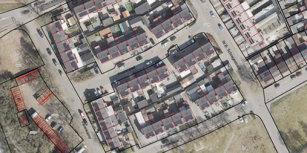 Het perceel waarop Krozenpad 8 staat heeft een oppervlakte van 4299 m². Dit is een zeer groot perceel. De perceeloppervlakte wordt geregistreerd door het Kadaster. Gedetailleerde informatie over de maten van dit perceel kunt u vinden in het rapport Kadastrale kaart met maatvoering van Krozenpad 8.