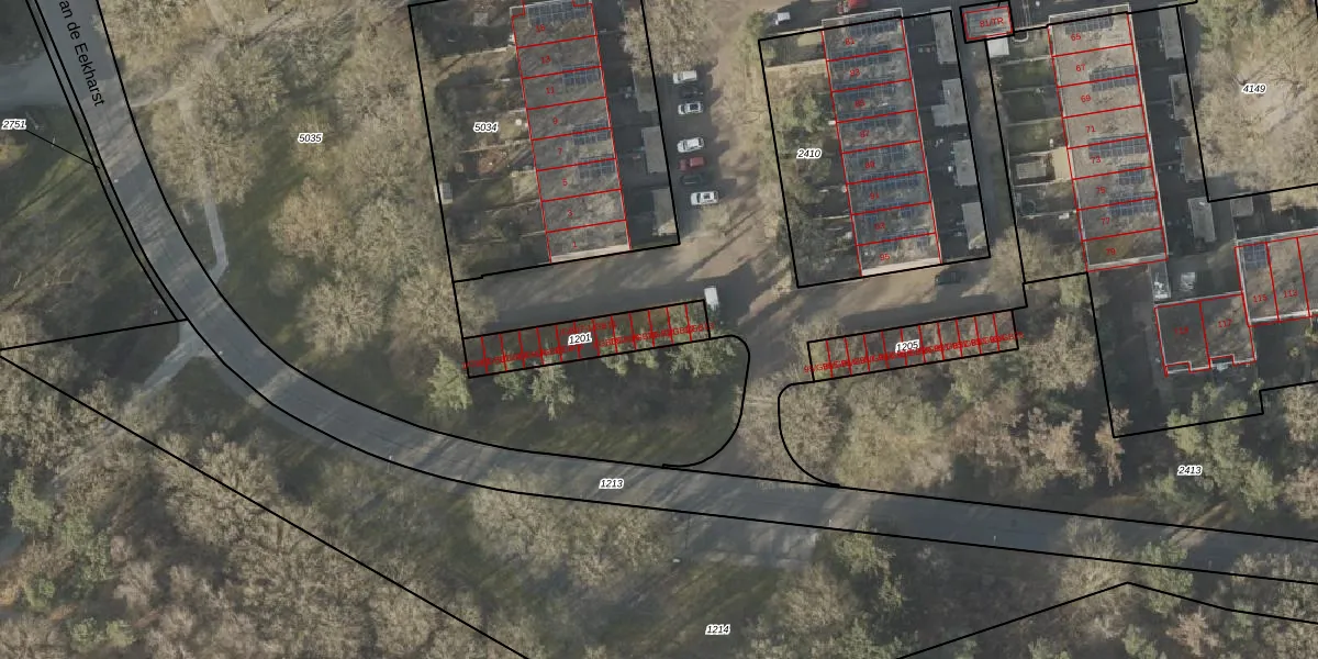 Laan van de Eekharst 1-GB11 is gelegen op kadastraal perceel EMN00L1201. Deze kadastrale aanduiding is uniek en wordt gebruikt door het Kadaster om eigendomsrechten en andere zakelijke rechten vast te leggen. Het perceel maakt onderdeel uit van de kadastrale gemeente Emmen.