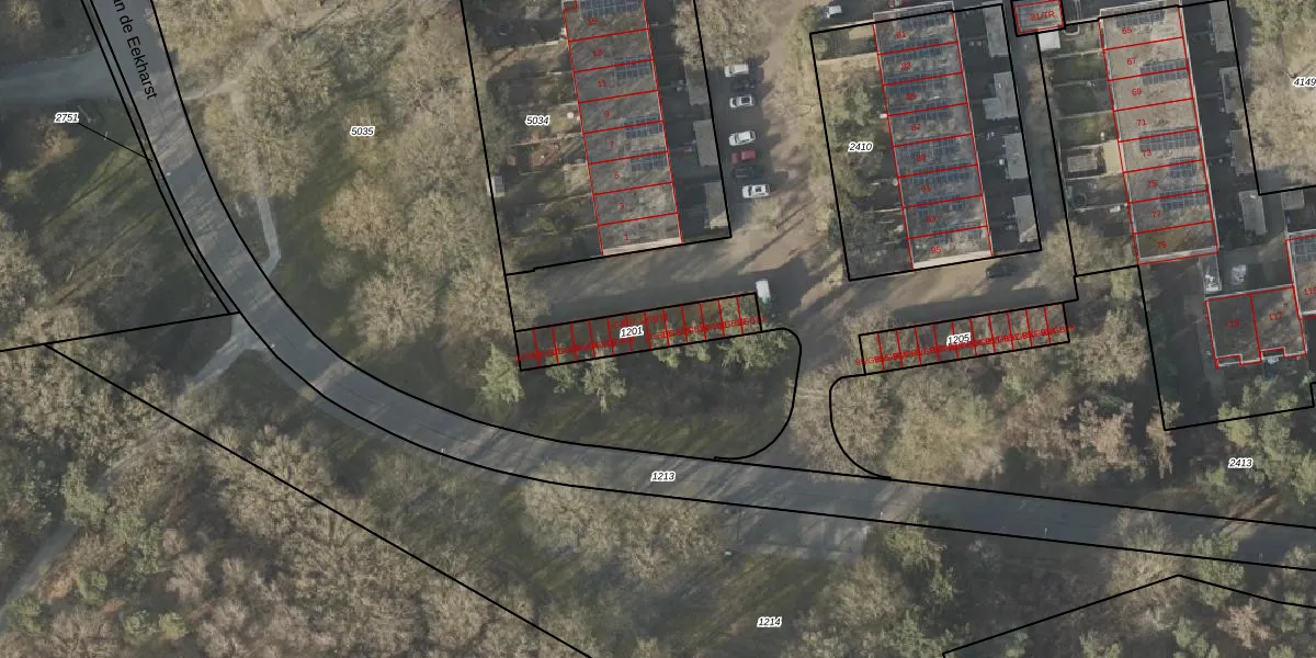 Laan van de Eekharst 1-GB08 is gelegen op kadastraal perceel EMN00L1201. Deze kadastrale aanduiding is uniek en wordt gebruikt door het Kadaster om eigendomsrechten en andere zakelijke rechten vast te leggen. Het perceel maakt onderdeel uit van de kadastrale gemeente Emmen.