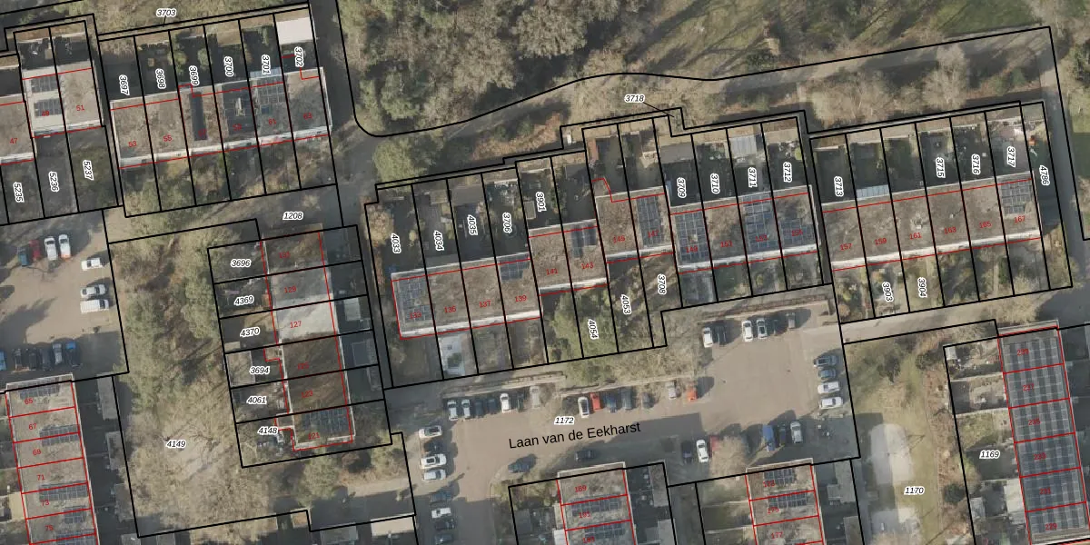 Laan van de Eekharst 141 is gelegen op kadastraal perceel EMN00L3901. Deze kadastrale aanduiding is uniek en wordt gebruikt door het Kadaster om eigendomsrechten en andere zakelijke rechten vast te leggen. Het perceel maakt onderdeel uit van de kadastrale gemeente Emmen.
