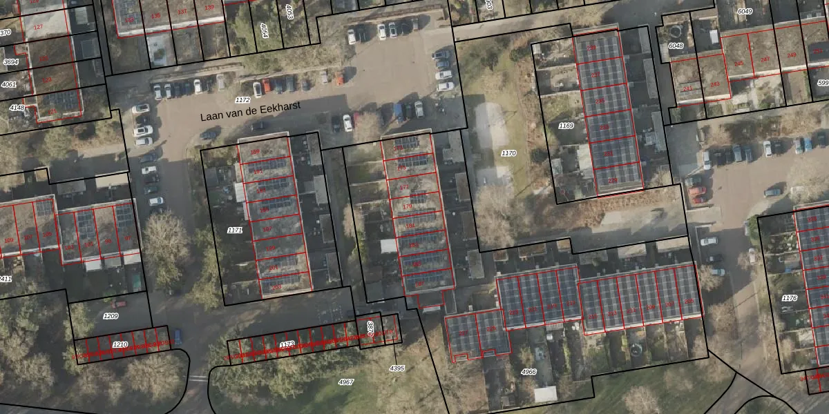 Het perceel waarop Laan van de Eekharst 179 staat heeft een oppervlakte van 3273 m². Dit is een zeer groot perceel. De perceeloppervlakte wordt geregistreerd door het Kadaster. Gedetailleerde informatie over de maten van dit perceel kunt u vinden in het rapport Kadastrale kaart met maatvoering van Laan van de Eekharst 179.