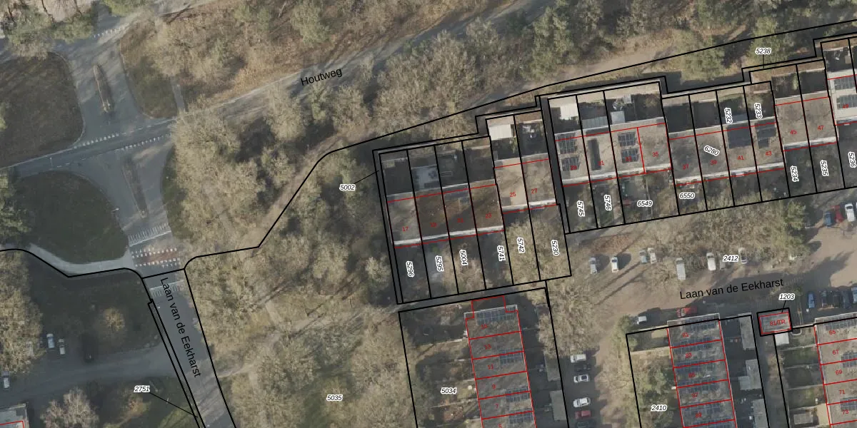 Laan van de Eekharst 19 is gelegen op kadastraal perceel EMN00L5295. Deze kadastrale aanduiding is uniek en wordt gebruikt door het Kadaster om eigendomsrechten en andere zakelijke rechten vast te leggen. Het perceel maakt onderdeel uit van de kadastrale gemeente Emmen.