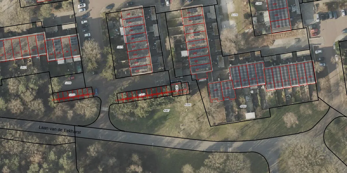 Gebruik de zoekbalk of klik op een perceel voor informatie over de adressen binnen dit perceel.