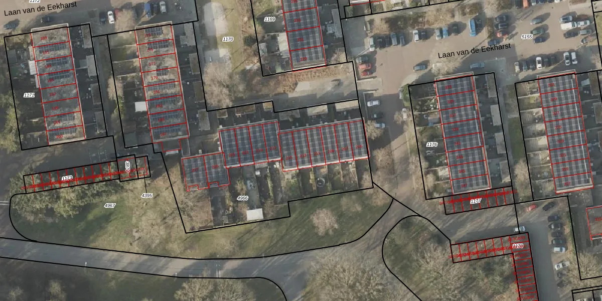 Het perceel waarop Laan van de Eekharst 213 staat heeft een oppervlakte van 3273 m². Dit is een zeer groot perceel. De perceeloppervlakte wordt geregistreerd door het Kadaster. Gedetailleerde informatie over de maten van dit perceel kunt u vinden in het rapport Kadastrale kaart met maatvoering van Laan van de Eekharst 213.