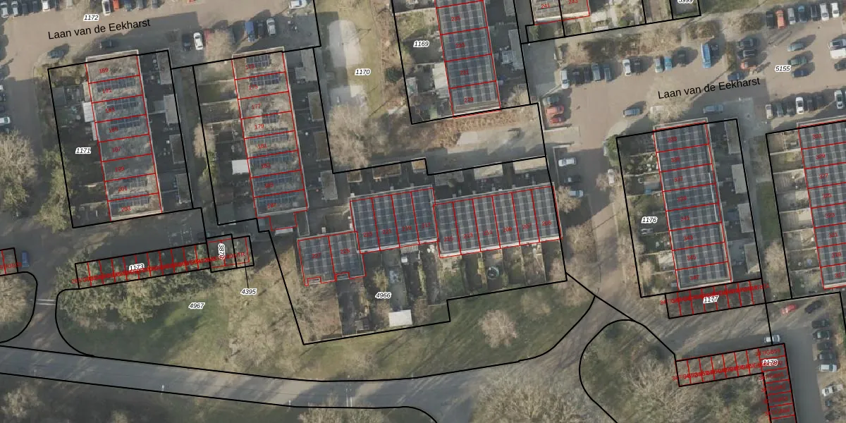 Het perceel waarop Laan van de Eekharst 217 staat heeft een oppervlakte van 3273 m². Dit is een zeer groot perceel. De perceeloppervlakte wordt geregistreerd door het Kadaster. Gedetailleerde informatie over de maten van dit perceel kunt u vinden in het rapport Kadastrale kaart met maatvoering van Laan van de Eekharst 217.
