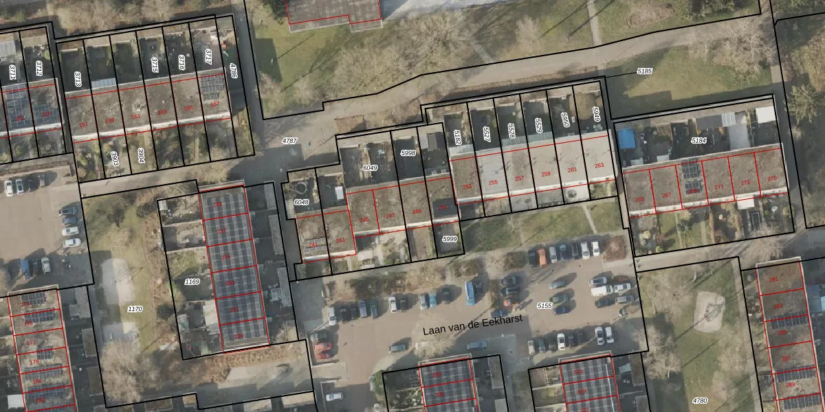Laan van de Eekharst 249 is gelegen op kadastraal perceel EMN00L5998. Deze kadastrale aanduiding is uniek en wordt gebruikt door het Kadaster om eigendomsrechten en andere zakelijke rechten vast te leggen. Het perceel maakt onderdeel uit van de kadastrale gemeente Emmen.