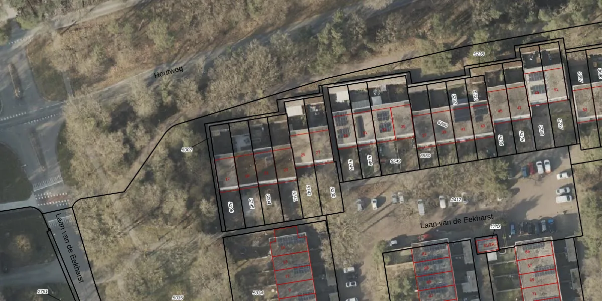 Laan van de Eekharst 25 is gelegen op kadastraal perceel EMN00L5742. Deze kadastrale aanduiding is uniek en wordt gebruikt door het Kadaster om eigendomsrechten en andere zakelijke rechten vast te leggen. Het perceel maakt onderdeel uit van de kadastrale gemeente Emmen.
