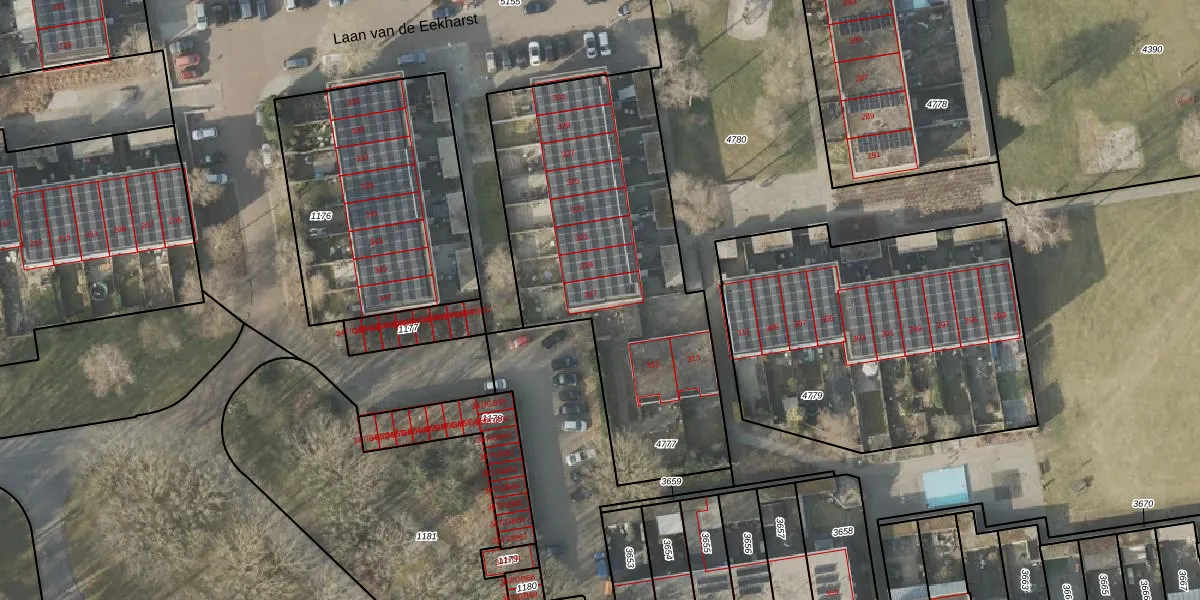 Het perceel waarop Laan van de Eekharst 317 staat heeft een oppervlakte van 1647 m². Dit is een zeer groot perceel. De perceeloppervlakte wordt geregistreerd door het Kadaster. Gedetailleerde informatie over de maten van dit perceel kunt u vinden in het rapport Kadastrale kaart met maatvoering van Laan van de Eekharst 317.