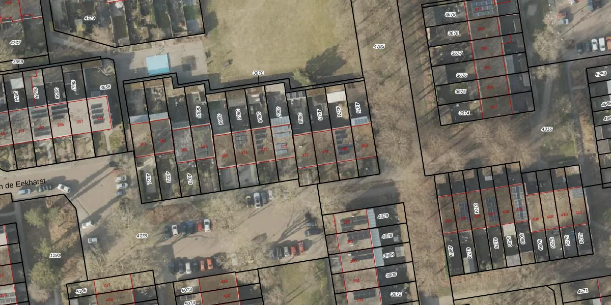 Laan van de Eekharst 377 is gelegen op kadastraal perceel EMN00L3668. Deze kadastrale aanduiding is uniek en wordt gebruikt door het Kadaster om eigendomsrechten en andere zakelijke rechten vast te leggen. Het perceel maakt onderdeel uit van de kadastrale gemeente Emmen.