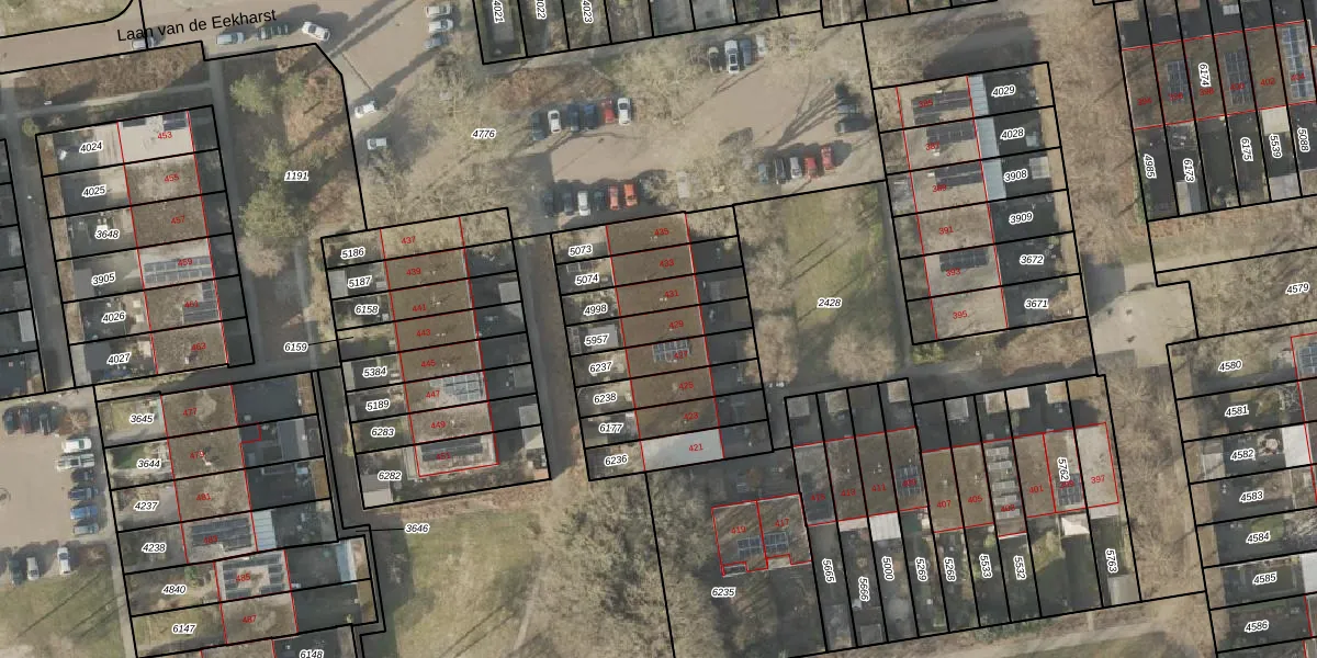 Laan van de Eekharst 429 is gelegen op kadastraal perceel EMN00L5957. Deze kadastrale aanduiding is uniek en wordt gebruikt door het Kadaster om eigendomsrechten en andere zakelijke rechten vast te leggen. Het perceel maakt onderdeel uit van de kadastrale gemeente Emmen.