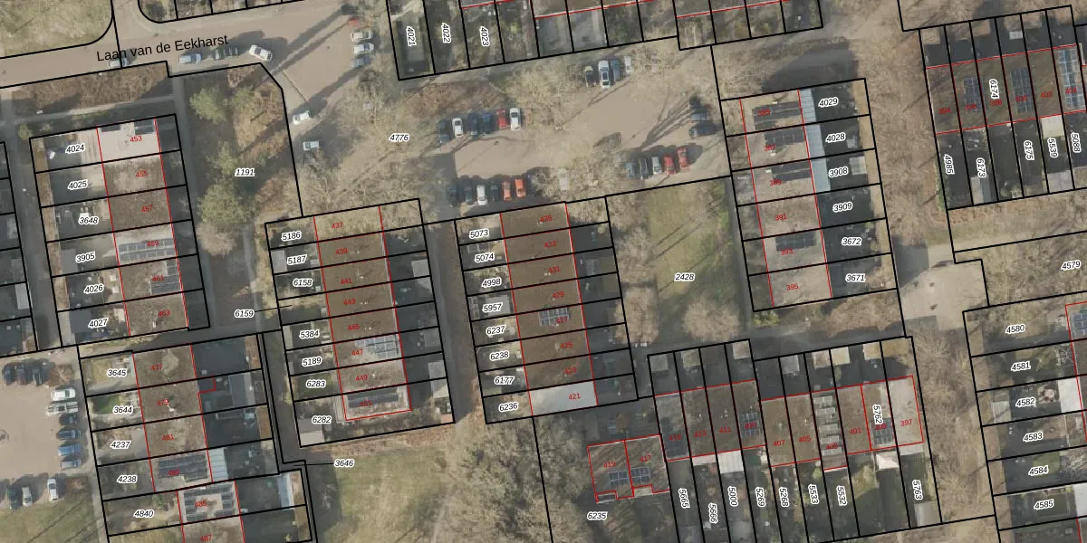 Laan van de Eekharst 431 is gelegen op kadastraal perceel EMN00L4998. Deze kadastrale aanduiding is uniek en wordt gebruikt door het Kadaster om eigendomsrechten en andere zakelijke rechten vast te leggen. Het perceel maakt onderdeel uit van de kadastrale gemeente Emmen.