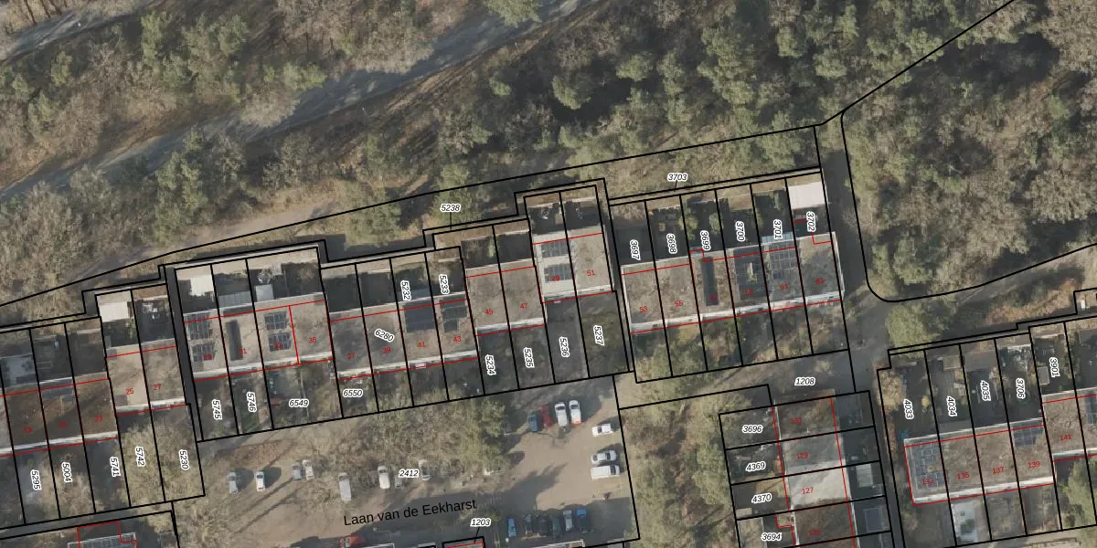 Laan van de Eekharst 49 is gelegen op kadastraal perceel EMN00L5236. Deze kadastrale aanduiding is uniek en wordt gebruikt door het Kadaster om eigendomsrechten en andere zakelijke rechten vast te leggen. Het perceel maakt onderdeel uit van de kadastrale gemeente Emmen.