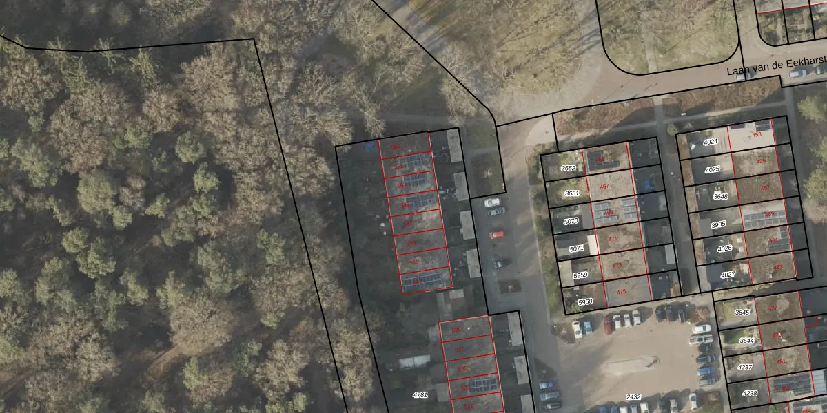 Laan van de Eekharst 549 is gelegen op kadastraal perceel EMN00L4781. Deze kadastrale aanduiding is uniek en wordt gebruikt door het Kadaster om eigendomsrechten en andere zakelijke rechten vast te leggen. Het perceel maakt onderdeel uit van de kadastrale gemeente Emmen.