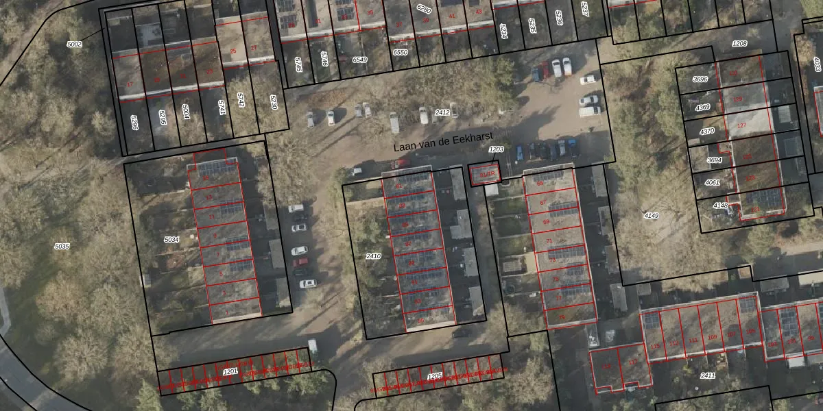 Laan van de Eekharst 83 is gelegen op kadastraal perceel EMN00L2410. Deze kadastrale aanduiding is uniek en wordt gebruikt door het Kadaster om eigendomsrechten en andere zakelijke rechten vast te leggen. Het perceel maakt onderdeel uit van de kadastrale gemeente Emmen.