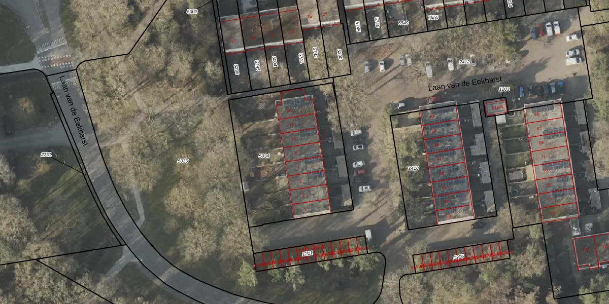 Laan van de Eekharst 9 is gelegen op kadastraal perceel EMN00L5034. Deze kadastrale aanduiding is uniek en wordt gebruikt door het Kadaster om eigendomsrechten en andere zakelijke rechten vast te leggen. Het perceel maakt onderdeel uit van de kadastrale gemeente Emmen.