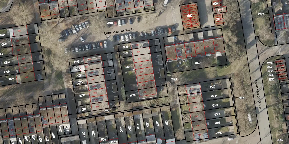 Het perceel waarop Laan van de Marel 214 staat heeft een oppervlakte van 677 m². Dit is een groot perceel. De perceeloppervlakte wordt geregistreerd door het Kadaster. Gedetailleerde informatie over de maten van dit perceel kunt u vinden in het rapport Kadastrale kaart met maatvoering van Laan van de Marel 214.
