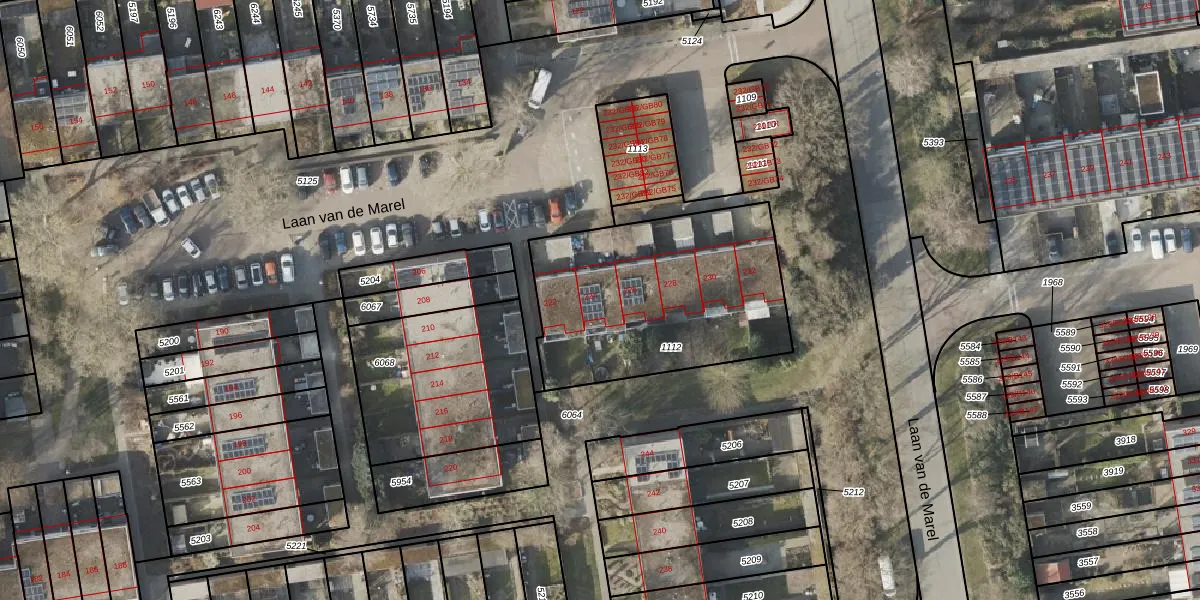 Laan van de Marel 224 is gelegen op kadastraal perceel EMN00L1112. Deze kadastrale aanduiding is uniek en wordt gebruikt door het Kadaster om eigendomsrechten en andere zakelijke rechten vast te leggen. Het perceel maakt onderdeel uit van de kadastrale gemeente Emmen.
