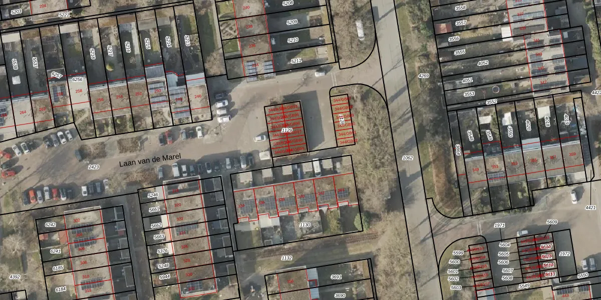 Laan van de Marel 344-GB99 is gelegen op kadastraal perceel EMN00L1129. Deze kadastrale aanduiding is uniek en wordt gebruikt door het Kadaster om eigendomsrechten en andere zakelijke rechten vast te leggen. Het perceel maakt onderdeel uit van de kadastrale gemeente Emmen.