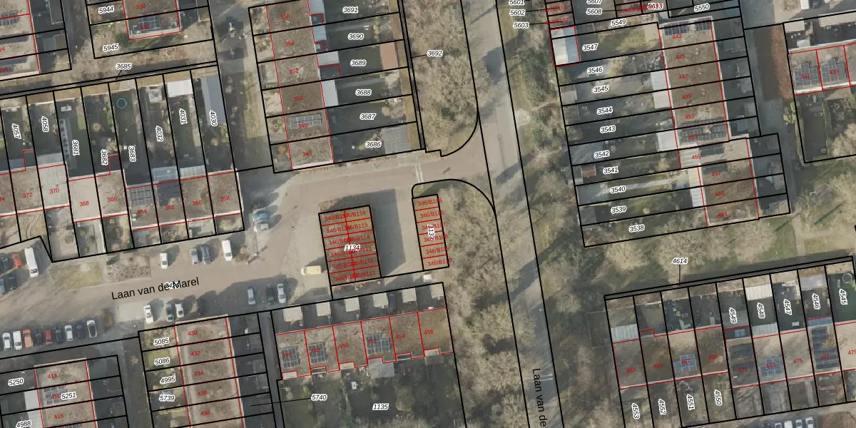 Laan van de Marel 346-B106 is gelegen op kadastraal perceel EMN00L1133. Deze kadastrale aanduiding is uniek en wordt gebruikt door het Kadaster om eigendomsrechten en andere zakelijke rechten vast te leggen. Het perceel maakt onderdeel uit van de kadastrale gemeente Emmen.