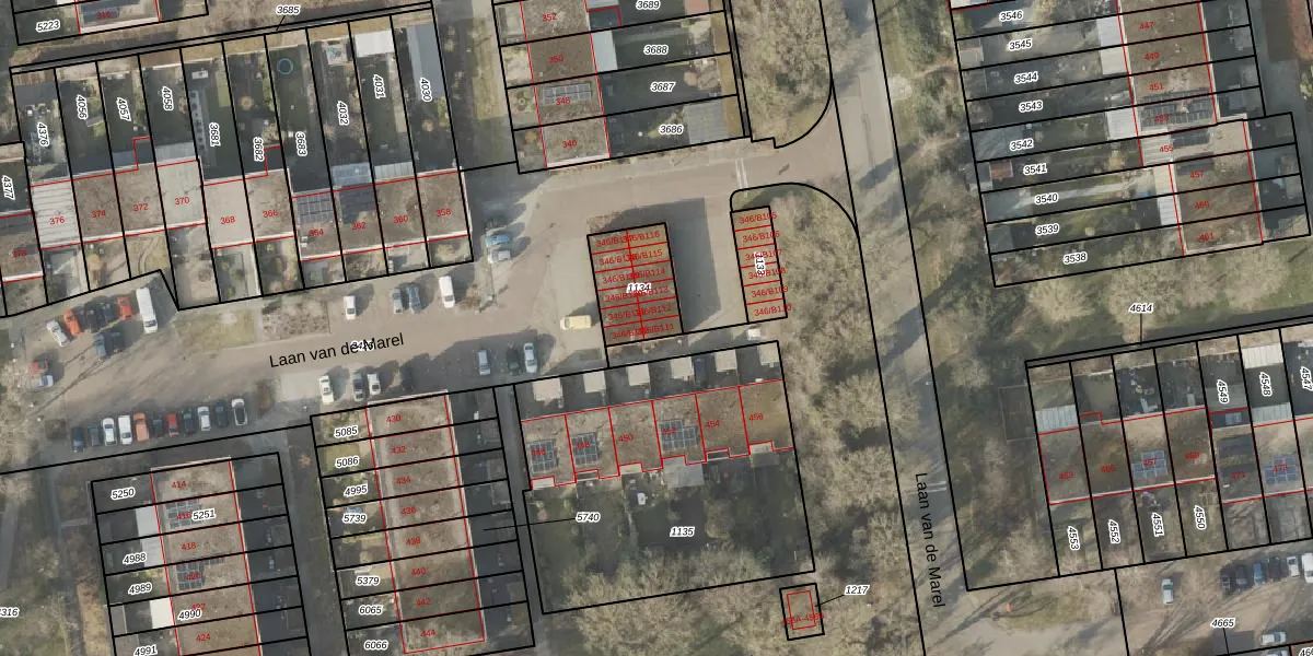 Laan van de Marel 346-B111 is gelegen op kadastraal perceel EMN00L1134. Deze kadastrale aanduiding is uniek en wordt gebruikt door het Kadaster om eigendomsrechten en andere zakelijke rechten vast te leggen. Het perceel maakt onderdeel uit van de kadastrale gemeente Emmen.