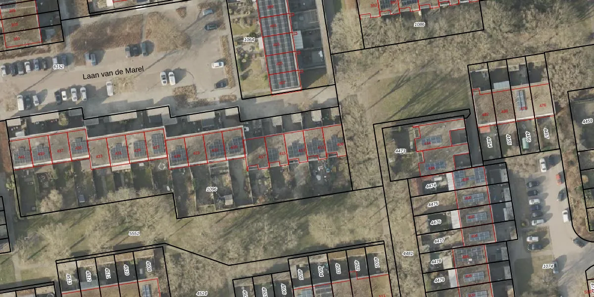 Het perceel waarop Laan van de Marel 413 staat heeft een oppervlakte van 3499 m². Dit is een zeer groot perceel. De perceeloppervlakte wordt geregistreerd door het Kadaster. Gedetailleerde informatie over de maten van dit perceel kunt u vinden in het rapport Kadastrale kaart met maatvoering van Laan van de Marel 413.