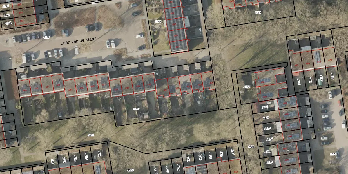 Het perceel waarop Laan van de Marel 415 staat heeft een oppervlakte van 3499 m². Dit is een zeer groot perceel. De perceeloppervlakte wordt geregistreerd door het Kadaster. Gedetailleerde informatie over de maten van dit perceel kunt u vinden in het rapport Kadastrale kaart met maatvoering van Laan van de Marel 415.