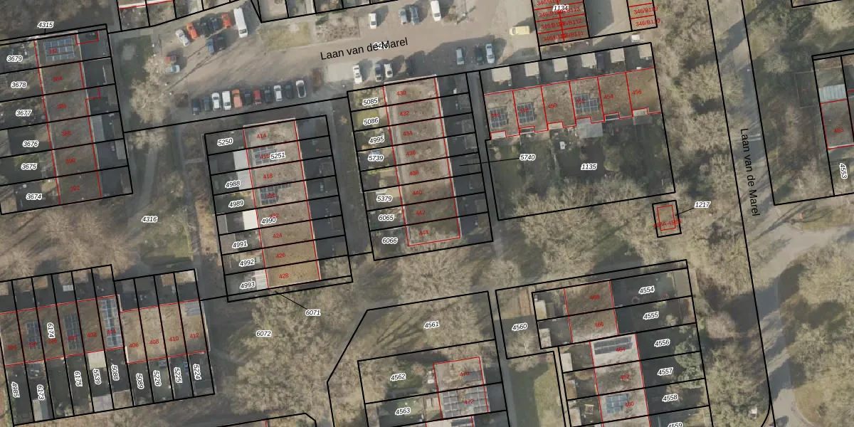 Laan van de Marel 442 is gelegen op kadastraal perceel EMN00L6065. Deze kadastrale aanduiding is uniek en wordt gebruikt door het Kadaster om eigendomsrechten en andere zakelijke rechten vast te leggen. Het perceel maakt onderdeel uit van de kadastrale gemeente Emmen.
