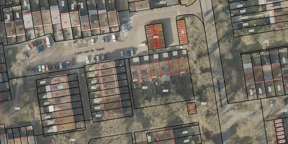 Het perceel waarop Laan van de Marel 448 staat heeft een oppervlakte van 1466 m². Dit is een zeer groot perceel. De perceeloppervlakte wordt geregistreerd door het Kadaster. Gedetailleerde informatie over de maten van dit perceel kunt u vinden in het rapport Kadastrale kaart met maatvoering van Laan van de Marel 448.
