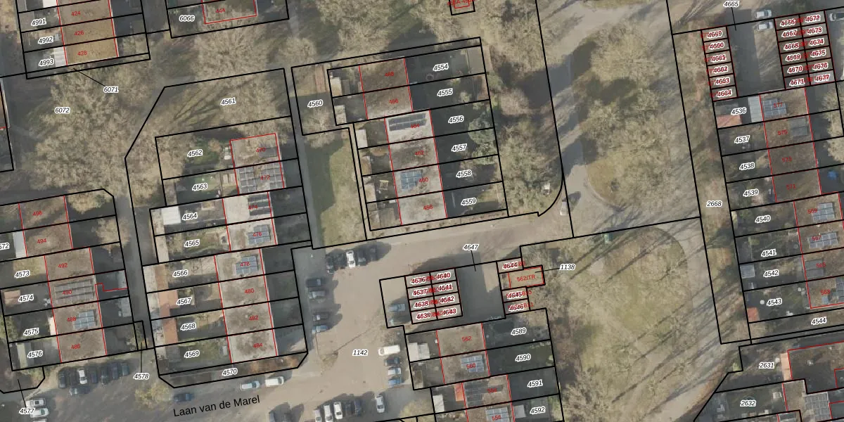 Laan van de Marel 458 is gelegen op kadastraal perceel EMN00L4559. Deze kadastrale aanduiding is uniek en wordt gebruikt door het Kadaster om eigendomsrechten en andere zakelijke rechten vast te leggen. Het perceel maakt onderdeel uit van de kadastrale gemeente Emmen.