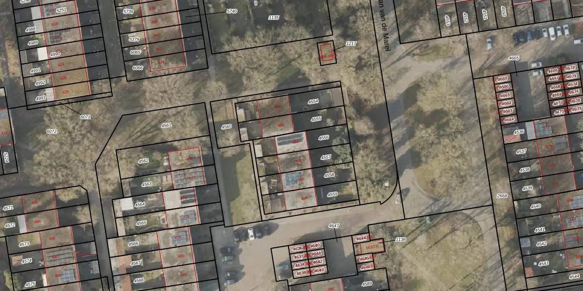 Laan van de Marel 464 is gelegen op kadastraal perceel EMN00L4556. Deze kadastrale aanduiding is uniek en wordt gebruikt door het Kadaster om eigendomsrechten en andere zakelijke rechten vast te leggen. Het perceel maakt onderdeel uit van de kadastrale gemeente Emmen.