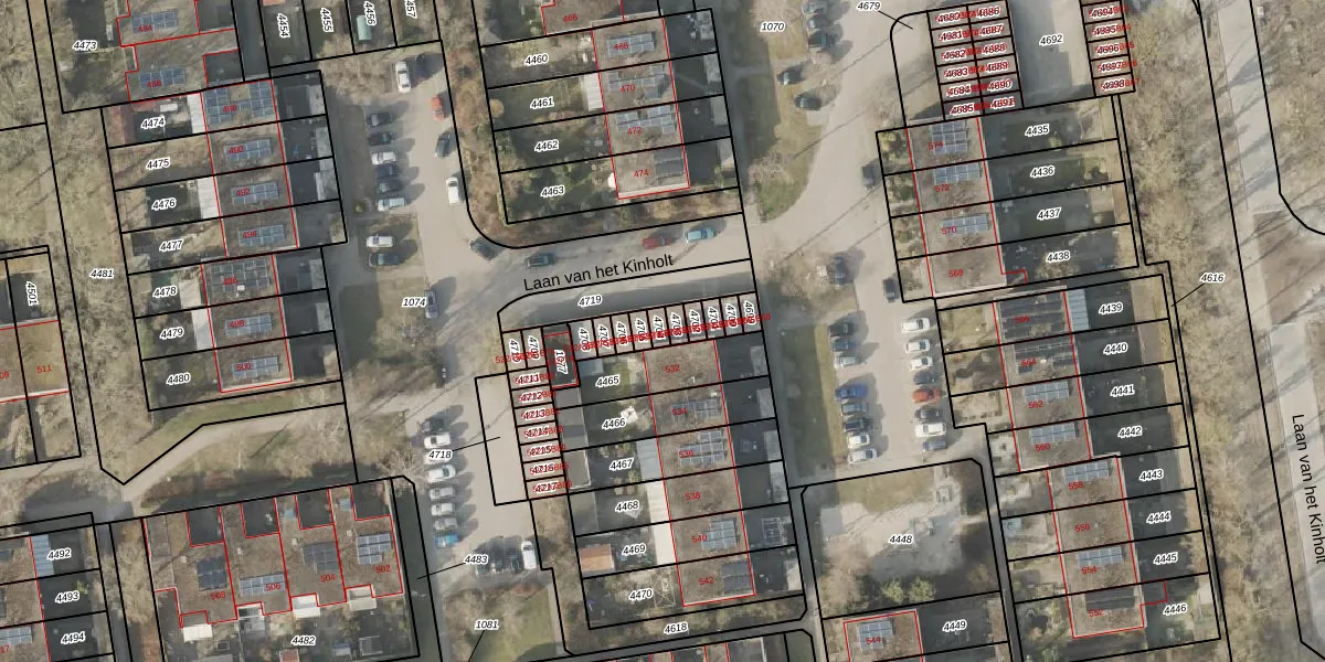 Laan van het Kinholt 532-GB73 is gelegen op kadastraal perceel EMN00L4704. Deze kadastrale aanduiding is uniek en wordt gebruikt door het Kadaster om eigendomsrechten en andere zakelijke rechten vast te leggen. Het perceel maakt onderdeel uit van de kadastrale gemeente Emmen.