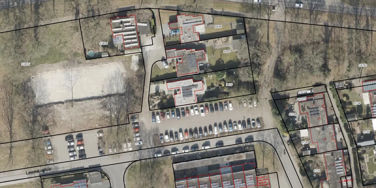 Het perceel waarop Leemkoelen 9 staat heeft een oppervlakte van 853 m². Dit is een groot perceel. De perceeloppervlakte wordt geregistreerd door het Kadaster. Gedetailleerde informatie over de maten van dit perceel kunt u vinden in het rapport Kadastrale kaart met maatvoering van Leemkoelen 9.