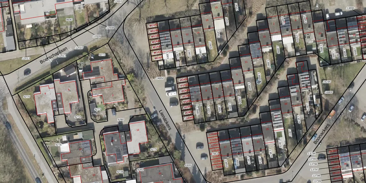 Gebruik de zoekbalk of klik op een perceel voor informatie over de adressen binnen dit perceel.